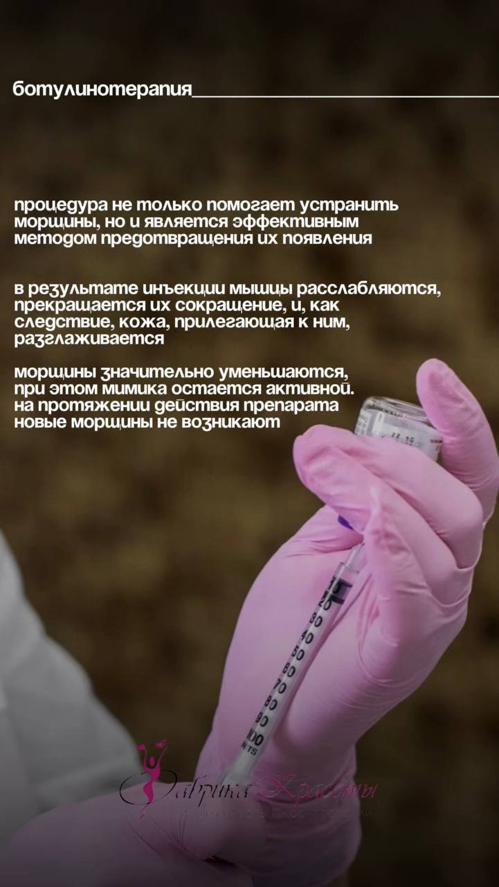 ➡️В результате инъекции мышцы расслабляются, прекращается их сокращение, и, как следствие, кожа, прилегающая к ним, разглаживается!